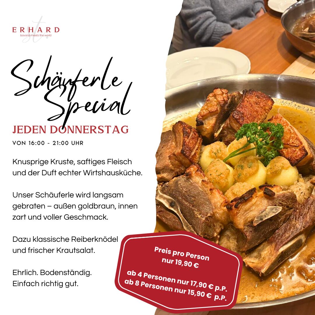 👉 Jeden Donnerstag im Restaurant St. Erhard – Schäuferle Special
